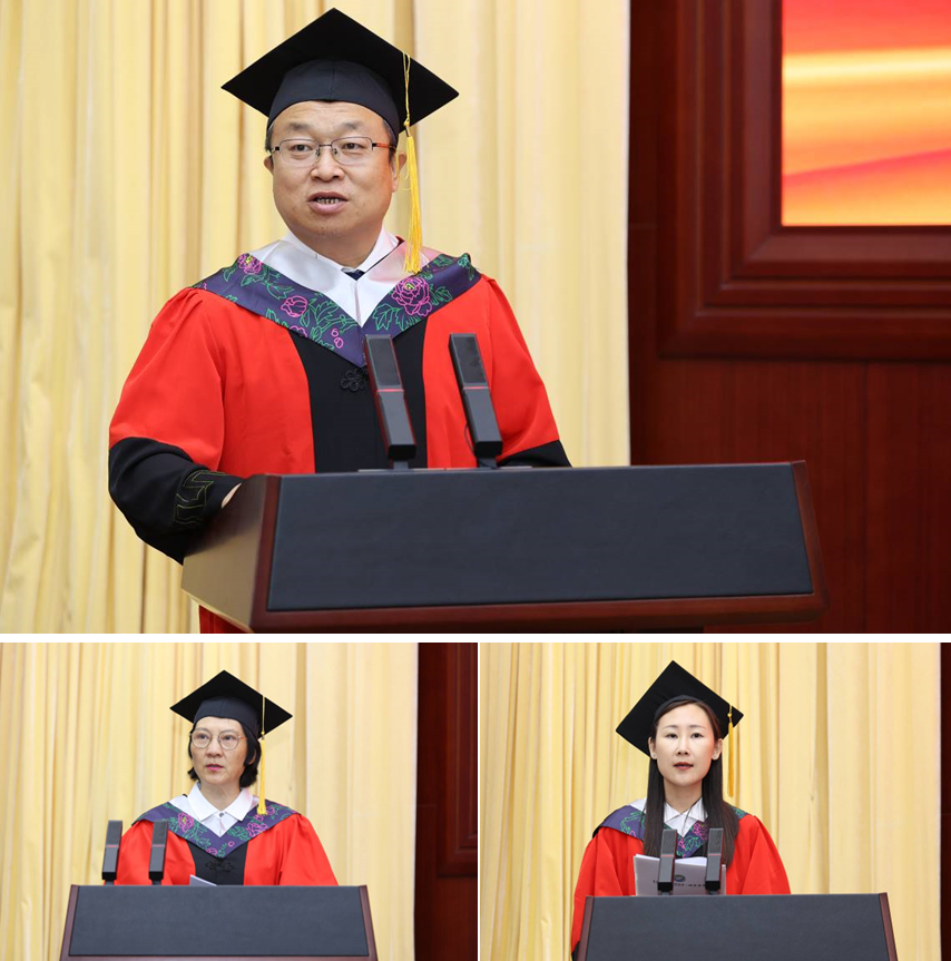 (左)院總工程師張孟衡宣讀授予學(xué)位決定/(右)研究生院常務(wù)副院長(cháng)安達宣讀獲獎名單