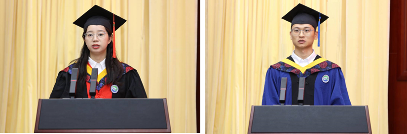 (左)博士畢業(yè)生代表牛琳發(fā)言/(右)碩士畢業(yè)生代表李世龍發(fā)言